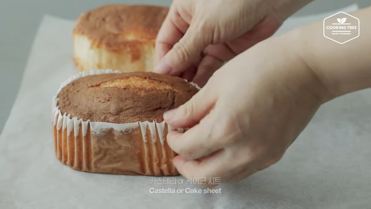 - Pour into a 15cm mold, bake in an oven preheated to 170 degrees for 30 minutes, cool, cut off the top and bottom, cut 3 sheets 1cm thick, and cut into 12cm molds.